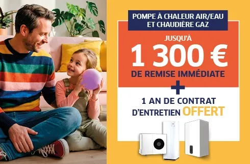 - Jusqu'à 1 300€ de REMISES IMMEDIATES cumulées(1) sur la pompe à chaleur air/eau, cumulables avec 10 800 € d’aides de l’Etat(*)